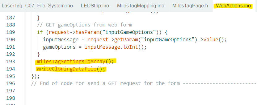 Make sure that all game-setting related web actions update the clone file by incorporating the highlighted code.